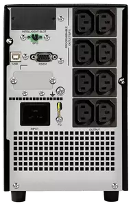 El UPS está equipado con puertos USB y RS232, así como con una ranura para tarjeta SNMP, lo que permite una gestión fácil y monitoreo remoto desde un ordenador, mejorando la seguridad de los dispositivos conectados.