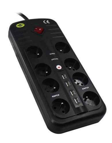 ORVALDI ORV8PL Home USB 3.0 Power Strip – La última solución en protección contra interferencias y sobretensiones. Con 8 enchufes con capacidad para 16A y un cable de alimentación robusto de 3 m, asegura un funcionamiento seguro e ininterrumpido para tu televisor, equipos Hi-Fi o computadora. Esta regleta destaca por su impresionante capacidad de supresión de sobretensiones de hasta 4500 J, convirtiéndola en una de las opciones más efectivas del mercado.