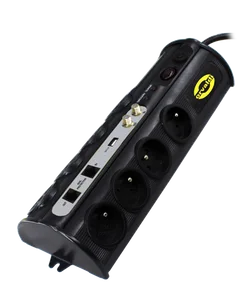 El ORV8PL Home está diseñado con un aislamiento de alta calidad para minimizar el riesgo de descargas eléctricas e incluye 2 enchufes RJ45 para proteger tu red LAN, así como 2 enchufes TV SAT (coaxiales), que proporcionan protección contra sobretensiones de 70 J. Además, cuenta con dos ganchos prácticos para un montaje fácil en el suelo o en la pared.