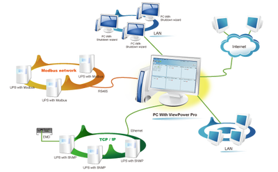 - Permite el control y monitoreo de múltiples unidades UPS a través de LAN e INTERNET.