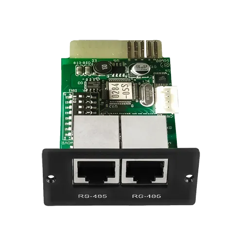 La tarjeta Modbus permite una comunicación fiable entre sistemas SAI o inversores fotovoltaicos y ordenadores y sistemas de supervisión que utilizan el protocolo estándar Modbus RTU. Es ideal para entornos industriales e instalaciones que requieren supervisión y control centralizados.